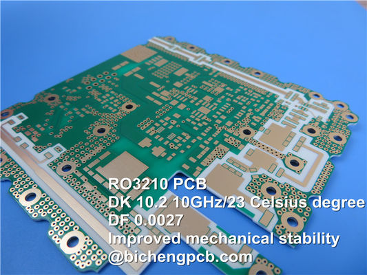 Sind Hochfrequenzlaminate des stromkreises RO3210 die keramisch-gefüllten Laminate, die mit gesponnenem Fiberglas verstärkt werden. Material RO3210 war als Ausdehnung der Hochfrequenzstromkreismaterialien der Reihe RO3000 mit einer unterscheidenen Eigenschaft entworfen-- verbesserte mechanische Stabilität.